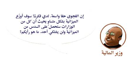 إنه من الصعب حقا أن تشغل منصب وزير المالية. هل تستطيعزن مساعدة وزير المالية في التخطيط كم من المال يخصص لأي وزارة?