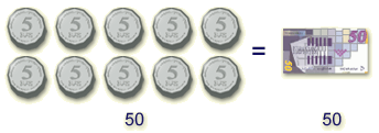אני יודע שב־50 שקלים יש 10 מטבעות של 5 שקלים.