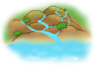 מים עיליים חלק ממי המשקעים שיורדים על הקרקע אינו חודר לתוכה ואינו מתאדה, אלא זורם על פני השטח. המים הזורמים על פני מדרונות ההרים והגבעות ועל פני המישורים - הם מים עיליים. המים זורמים בכוח המשיכה מן ההרים אל העמקים ואל המישורים (ממקום גבוה אל מקום נמוך). בכוח הזרימה, יוצרים המים אפיקים שהולכים ומעמיקים עם הזמן. כך נוצרים הנחלים. באזורים הרריים, השיפוע התלול של המדרונות גורם לזרימה מהירה וחזקה של המים, והנחלים יוצרים ערוצים עמוקים וצרים. באזורים מישוריים, אפיקי הנחלים רדודים ורחבים יותר, והמים זורמים בהם לאט יותר. המים זורמים במורד ולבסוף נקווים באגמים טבעיים ומלאכותיים או זורמים אל הים. האזור שממנו מתנקזים מים לנחל, לנהר או לאגם נקרא אגן ההיקוות. זרימת מי הנחל יכולה להימשך גם באופן מלאכותי - כאשר מזרימים לאפיק הנחל מים הנובעים מפעילות אנושית (מי שפכים ועודפי מים מהשקיה חקלאית).
