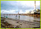 | במקום השפך של הנחל המזוהם אל הים המים מזוהמים ואסורים לרחצה ולדיג |
