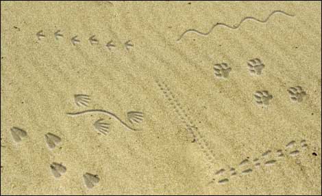 נוכל לראות את עקבותיהם ואת עקבותיהם של שאר בעלי החיים מוטבעים בחול, ולנחש: מי היה כאן?