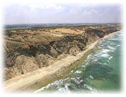 עכשיו כשאתם יודעים, התבוננו מחדש בגרגר של חול ים. נסו לדמיין את המסע שאותו עבר גרגר החול הזה: מאיפה התחיל, היכן עבר והאם ימשיך לנדוד מכאן? לאן? כורכר: כשחול הופך לאבן הכורכר הוא סוג של סלע שעשוי ברובו מגרגרי חול ומשברי צדפים. חומרים אלה, שנמצאים באזור החוף, התלכדו עם תמיסות של חומרי גיר שמקורם במי הים. למעשה, הכורכר הוא חול שהתאבן בתהליך ממושך מאוד והפך לסלע קשה ומוצק. רצועת החוף הצרה ומצוקי הכורכר באזור נתניה צילום: משה מילנר, באדיבות ארכיון לשכת העיתונות הממשלתית |