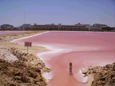 האם כך ייראה ים המלח בעתיד? "פריחה" של חיידקים אדומים אוהבי מלח בבריכות המלח באילת. באדיבות פרופ' אהרון אורן