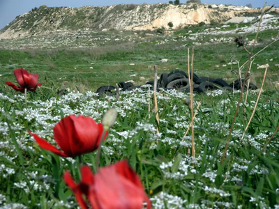 צמיגים משומשים - מפגע סביבתי בשדה כלניות ליד שוהם