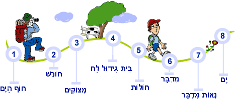 בעקבות מגוון המינים בישראל נסענו דרומה אל הנגב, כדי לפגוש צמחייה ובעלי-חיים במדבר. המדבר הוא סביבת חיים, שהמשקעים בה מועטים, ויש בה מחסור במים. בשל כך, המדבר יבש וצהוב בדרך כלל, ורוב הצמחים ובעלי-החיים מתרכזים בערוצי הנחלים ובוואדיות. בעלי-החיים והצמחים מותאמים לתנאי האקלים במדבר ולמחסור במים. אצל הצמחים, לדוגמה, נראה עלים קטנים ובשרניים המאבדים פחות מים, שורשיהם עמוקים מאוד או משתרעים על גבי שטח גדול כדי לקלוט כמות גדולה יותר של מים. בעלי-החיים המדבריים צורכים כמות קטנה יחסית של מים, ובגופם מנגנונים להפחתת איבוד המים. רבים מבעלי-החיים המדבריים מסתתרים מפני החום בשעות היום החמות ויוצאים מהמחילות בלילה.