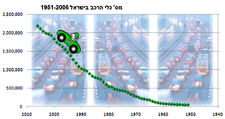 כפי שניתן לראות בגרף, העלייה בכמות האוכלוסין בארץ וברמת החיים של התושבים גורמת לעלייה במספר כלי הרכב הנעים בכבישים. בשנת 2007 נעו בכבישי הארץ כ-2,284,000 כלי רכב מנועיים, מתוכם כ-1,779,000 כלי רכב פרטיים. מתוך אלה כ-108,100 הם כלי רכב שנוספו במשך שנה אחת (מאז 2006) – זהו גידול של 5%. שיעור הגידול הזה הוא הגבוה ביותר בשבע השנים האחרונות. ריבוי כלי הרכב גורם לא רק לפקקים ולתאונות דרכים, הוא אף אחראי לחלק ניכר מזיהום האוויר שאנו נושמים, ובעיקר במרכזי הערים.