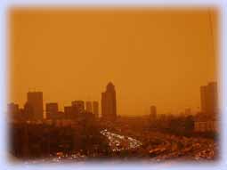 בתמונת הערפיח מעל תל-אביב תוכלו להבחין בשכבה בצבע חום-אדמדם. צבע זה נגרם מכמות גבוהה של תחמוצות חנקן באוויר.